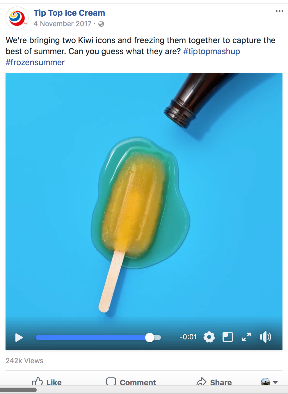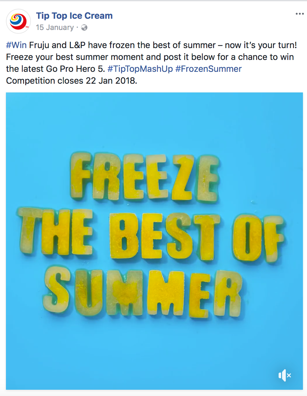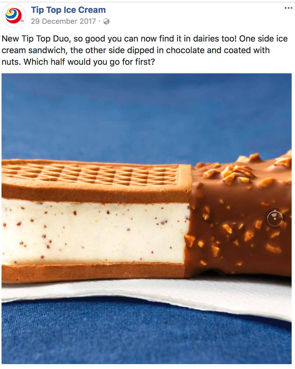 Tip Top social posts - Summer is the busiest time of year for ice-cream. Tip Top kept the conversation with their customers going throughout the summer with competitions, new flavours and sampling opportunities. We used seven second animations and playful scrolling effects to keep the posts fun.